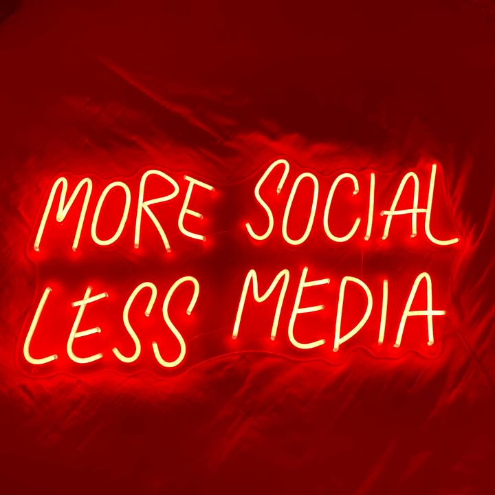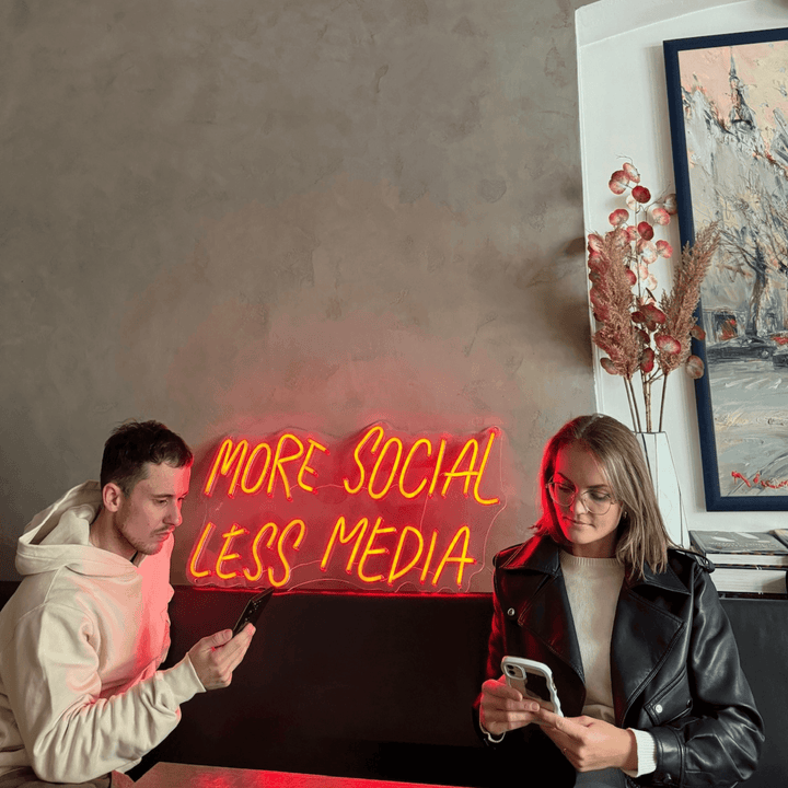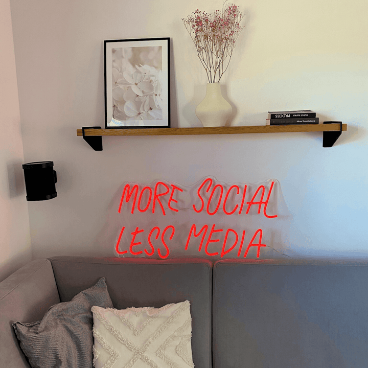 Proč si vybrat náš neonový nápis 'More Social, Less Media'?